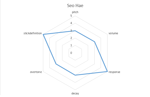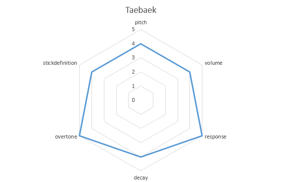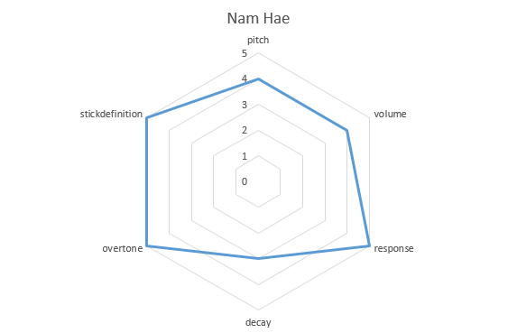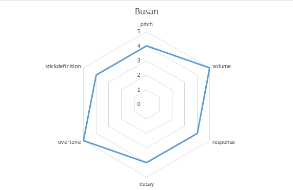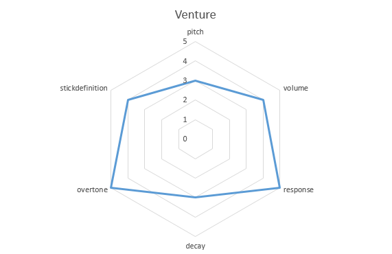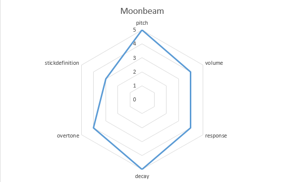 The hexagonal graph below is a visual representation of the sound propensity sought by the cymbal recipe.